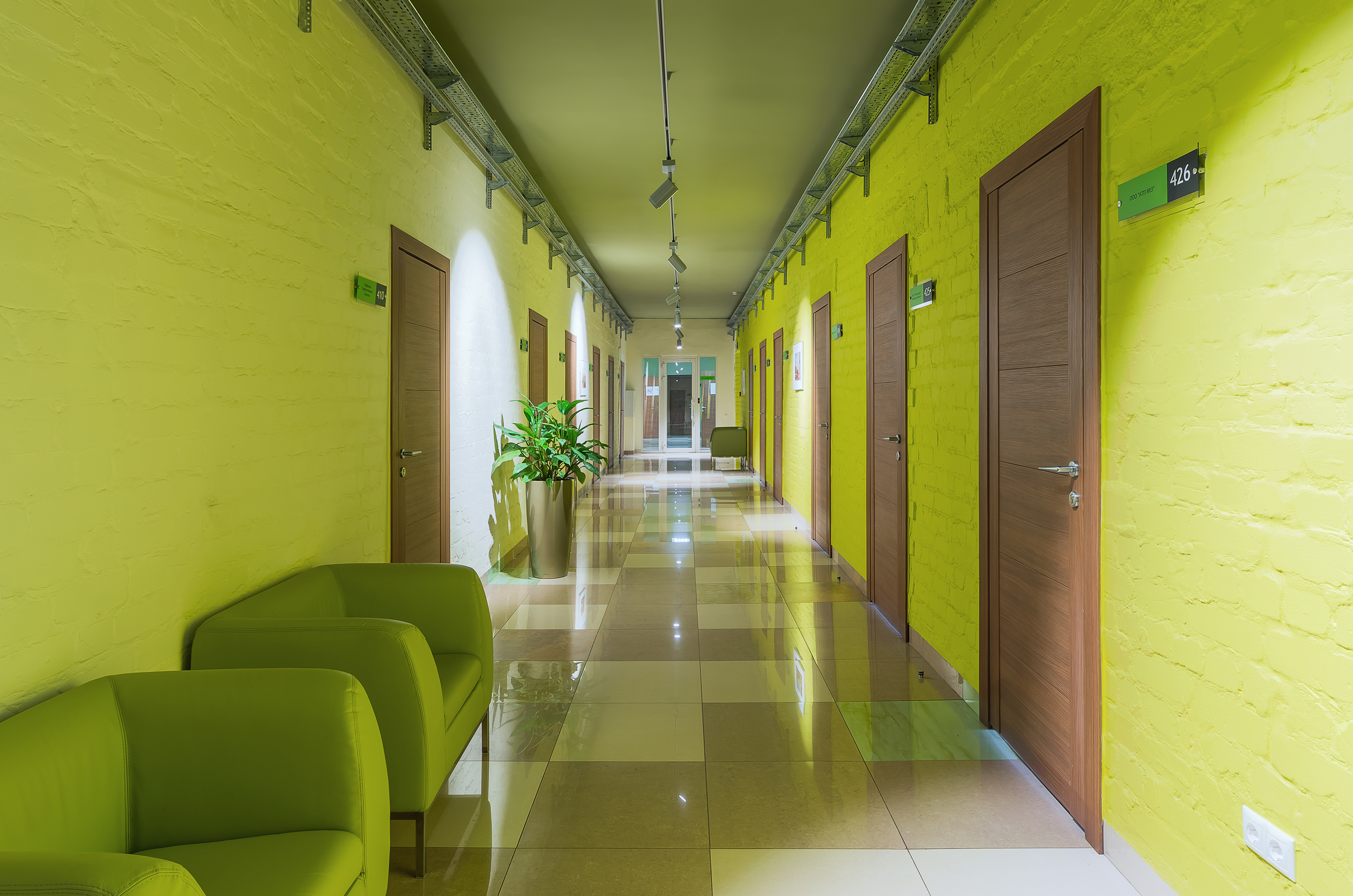 - На этажах уютные зоны отдыха, авторские картины, постеры и цветы.